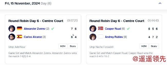 在纽康比组第2场第二轮比赛中,6号种子鲁德对阵8号种子卢布列夫。在双方此前7次交手中,卢布列夫5胜2负占优,2022年总决赛小组赛,开云体育官方鲁德2-0获胜。本届赛事小组赛前两场,鲁德1胜1负,卢布列夫则是2战皆负。